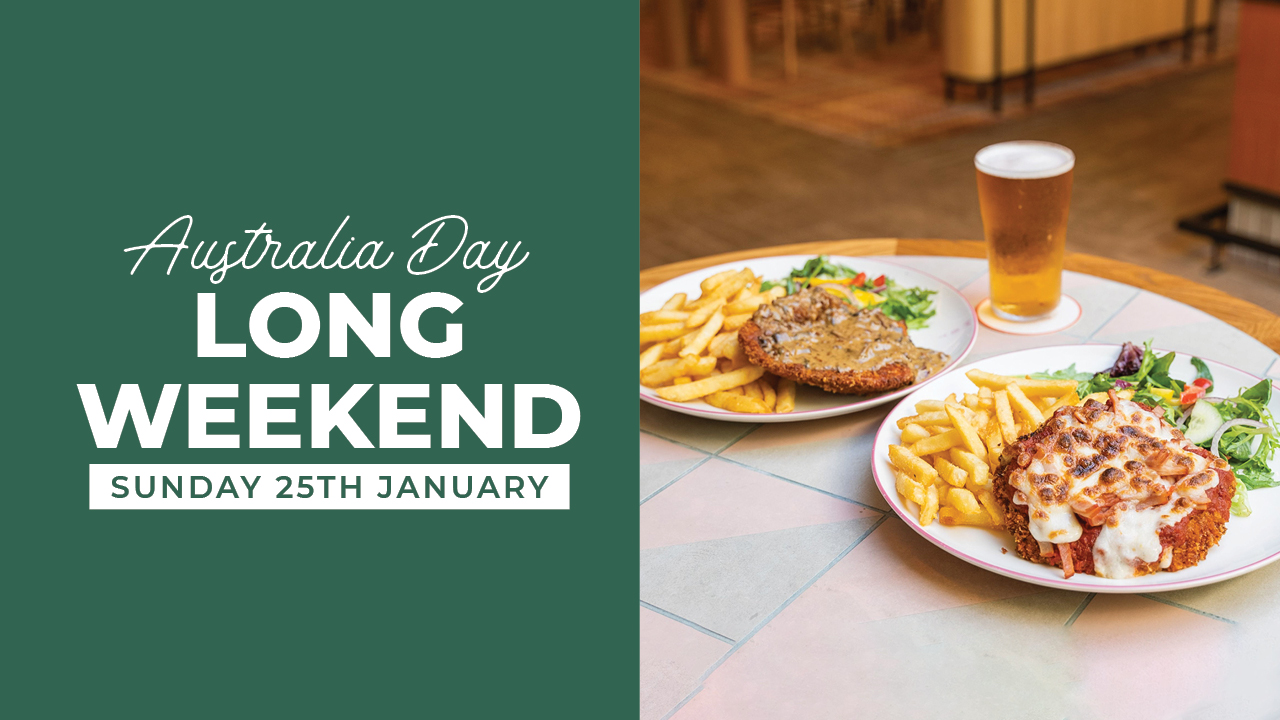 No plans this Australia Day long weekend? Join us on Sunday 25 Jan for all-day dining, a $26 Parmi & Pot combo, a dart competition in the Sports Bar, and live music from 3pm–6pm — one day only!